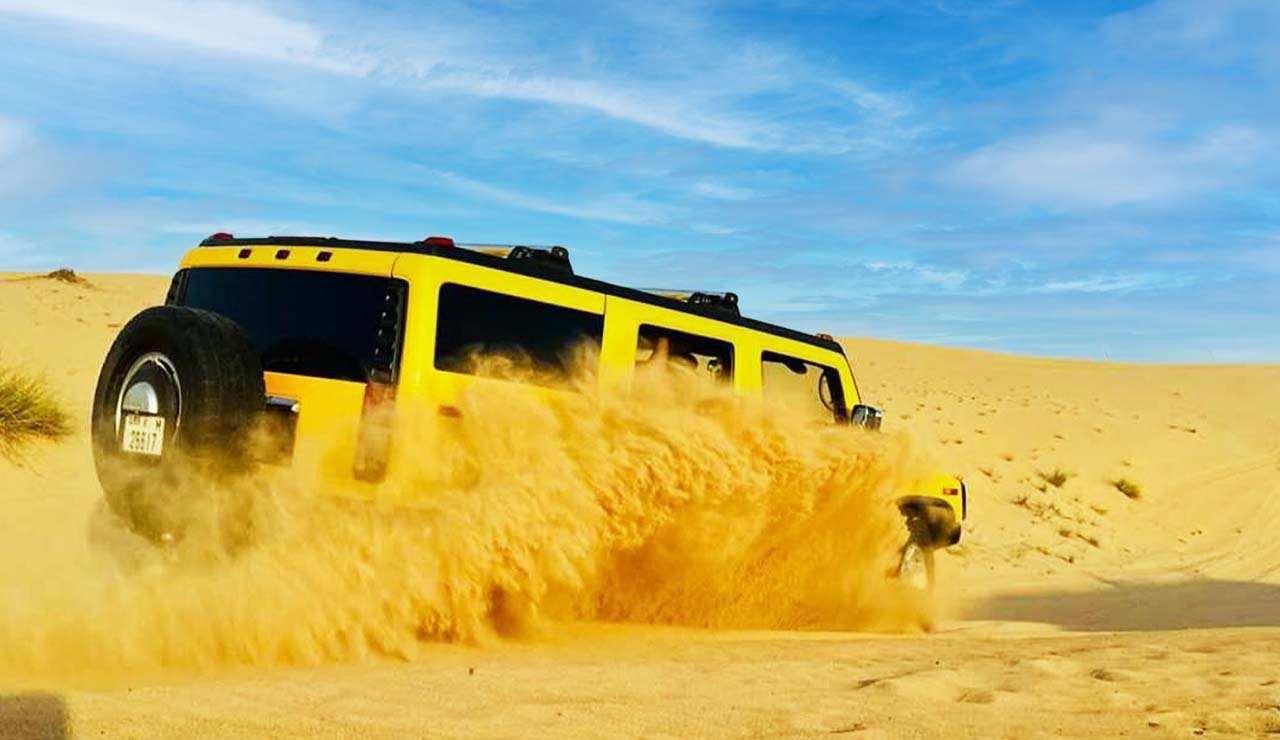 When heading to Dubai, Hummer Safari merges adrenaline-inducing offroading with extreme comfort. Passengers luxuriate in Hi-Tech leather seats set in a temperature-controlled cabin and experience the magic of dune bashing. Despite the hardships, the H2 is renowned for its enormous body, which makes it untouched and blue, and the added stability control makes it the most authoritative offroading vehicle in the desert.
